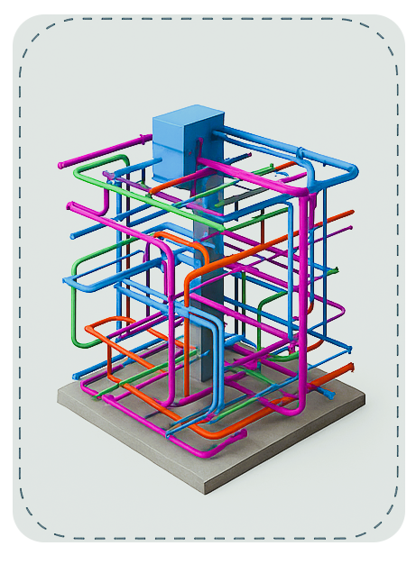 Modelamos cada disciplina por separado —arquitectura, estructura y redes técnicas (mecánicas, eléctricas y de plomería)— asegurando que cada especialidad cuente con toda la información necesaria para su desarrollo y ejecución en obra.